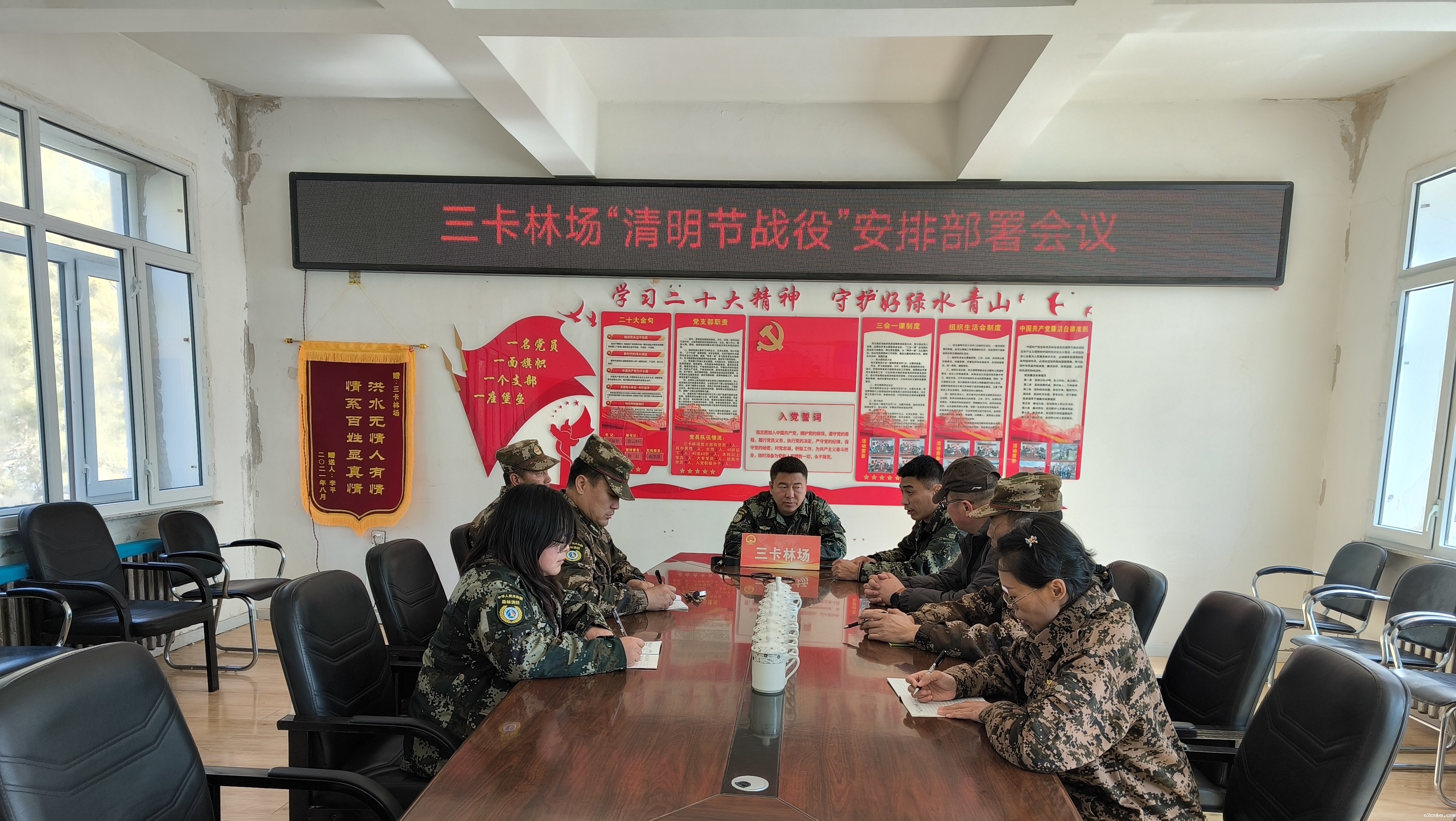 在“清明节战役”期间,三卡林场召开“清明节战役”工作部署会议,部署清明节战役期间各项工作,严格执行24小时值班值守制度,严肃值守纪律,面对近期雨雪天气,依然坚持值守。截至目前,出动防火运兵车辆3台,风力灭火机9台,二号工具20把,扑火队员30名分别在星山村和老道店村墓地执行清明节宣传和看守巡护任务。对祭祀人员进行登记对携带的火种和易燃易爆物品集中保管,坚决杜绝火源上山,确保不发生森林火灾。对墓地进行“死看死守”,做到“守住路口、看住坟头、见烟就查、见火就灭”。